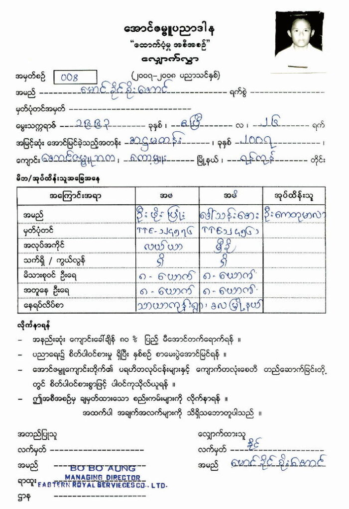 まず、お礼を申したいです。恩の大きいおじさん、おばさんとミャンマーの代理おじさんたちに非常に感謝しています。